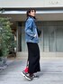 170cm/骨格ナチュラル リアルバイ、春の大人カジュアルコーデ。 スニーカースタイルでラフな中にもデニムジャケットを羽織るだけでオシャレが叶う大人コーデ。 シンプルコーデに赤ソックスがポイント。 ボディバッグは見た目以上に中身が入るのでお出かけや旅行に最適です♪