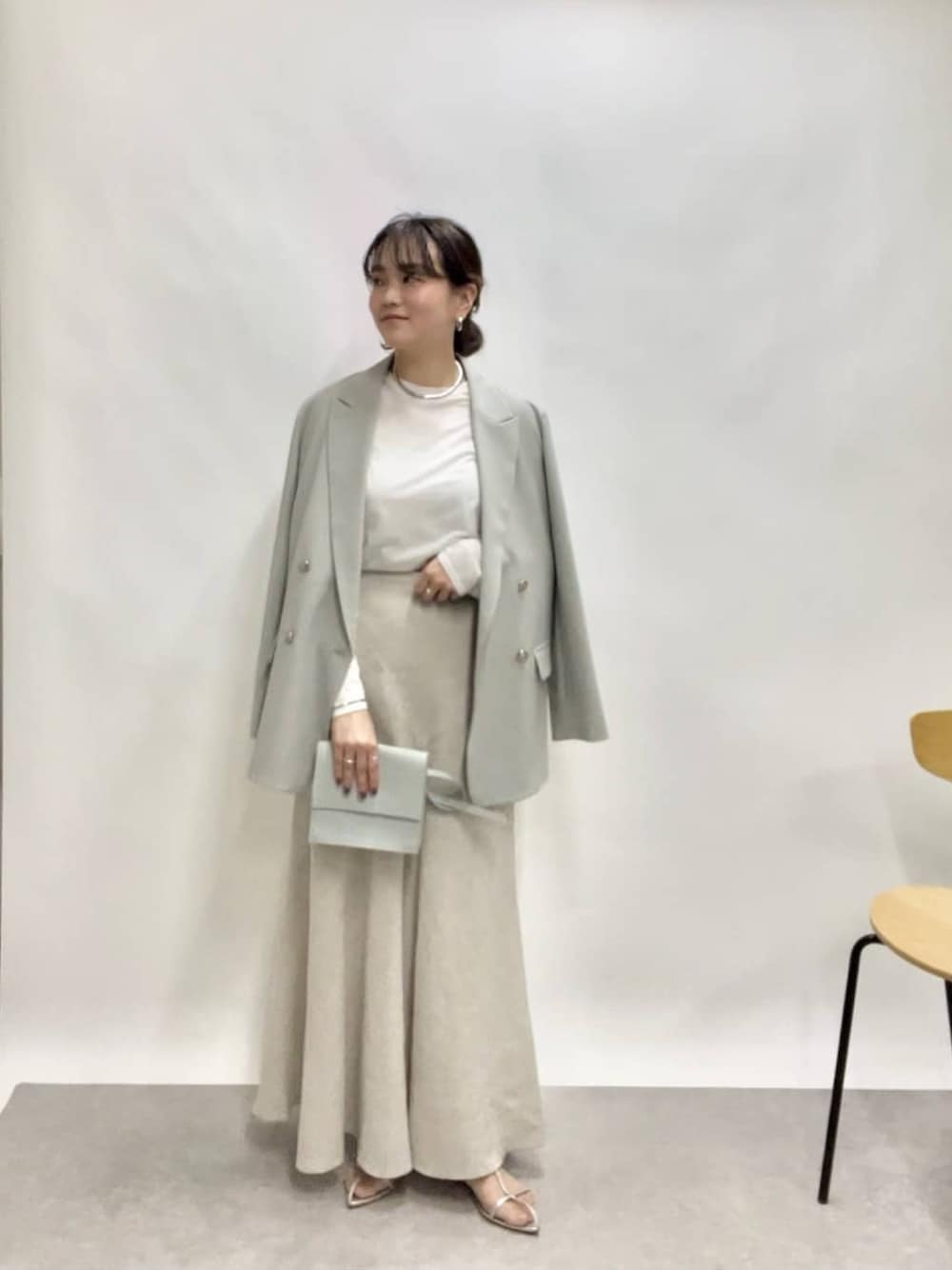 157cm 骨格ウェーブ ●ジャケット シルエットのキレイなジャケット 程よくハリもあるので袖を通しても柔らかすぎずきちんと感が出るアイテムです。 UVカット、接触冷感なので夏場もお勧めです。 ●スカート マーメイドシルエットのスカート、 腰回りもすっきりキレイに見える細見えスカート。 女性らしく上品な印象になるので デートやお出かけなどきちんとしたい時にもお勧め。 カジュアルになりすぎない、キレイめスカートです。