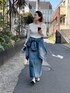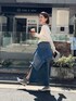 165cm/骨格ウェーブ 綺麗めブラウスは少しカジュアルにリネンのスカートとデニムジャケットで! でも女っぽ要素は忘れないようにマーメイドラインのスカートにするとスッキリしながら体型カバーも出来ます! 夏も使えるから、一枚はもちろん羽織りを変えても◎ 着回し力抜群!
