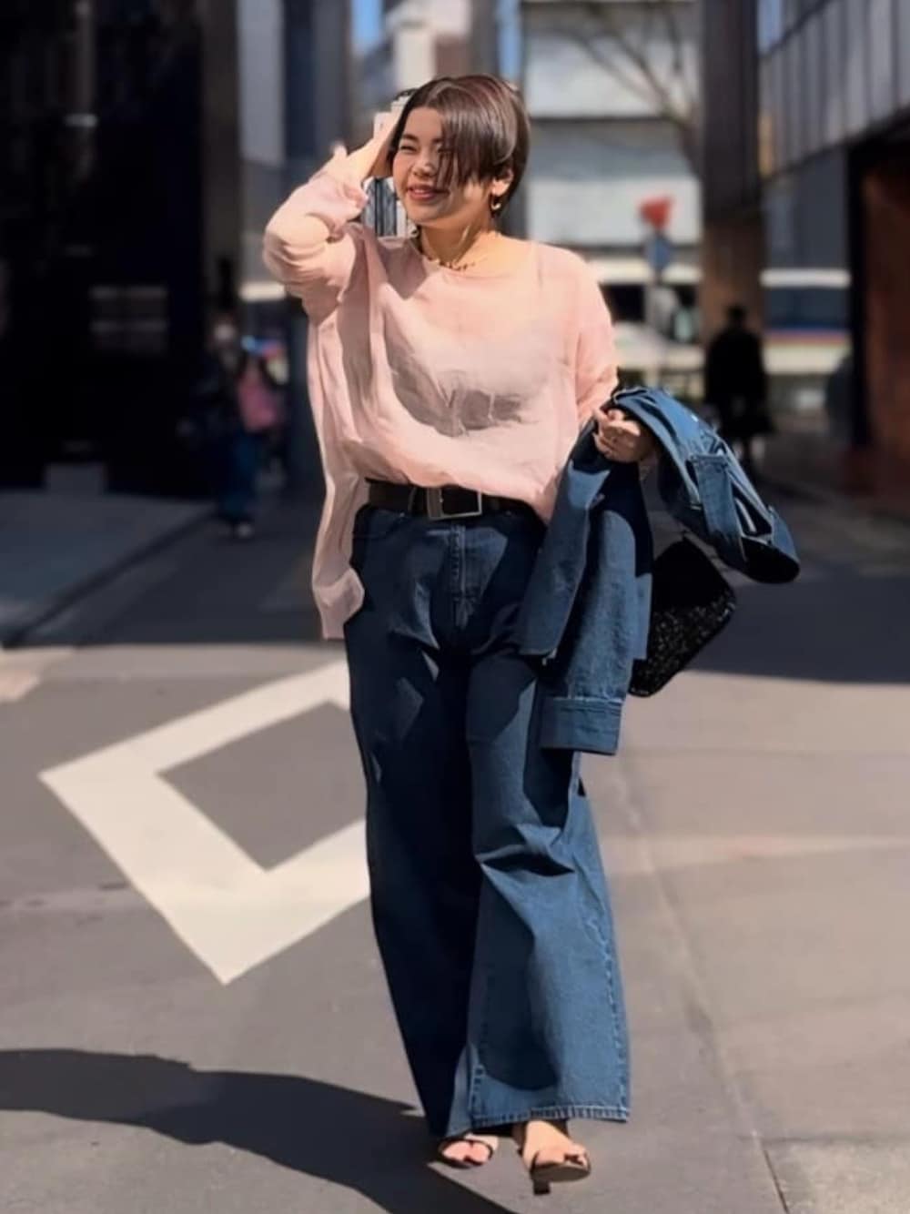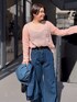 161cm/骨格ウェーブ 春らしいピンクブラウスにぴったりの濃いめカラーデニム! 甘くなりすぎず程よく女性らしさを残すのがポイント! ブラウスは長袖ですが、シアー感があるので、日焼けや冷房対策にも◎ デニムは柔らかく履き心地のいいライトデニムでデニム特有の硬さがなくノンストレスで履けます!