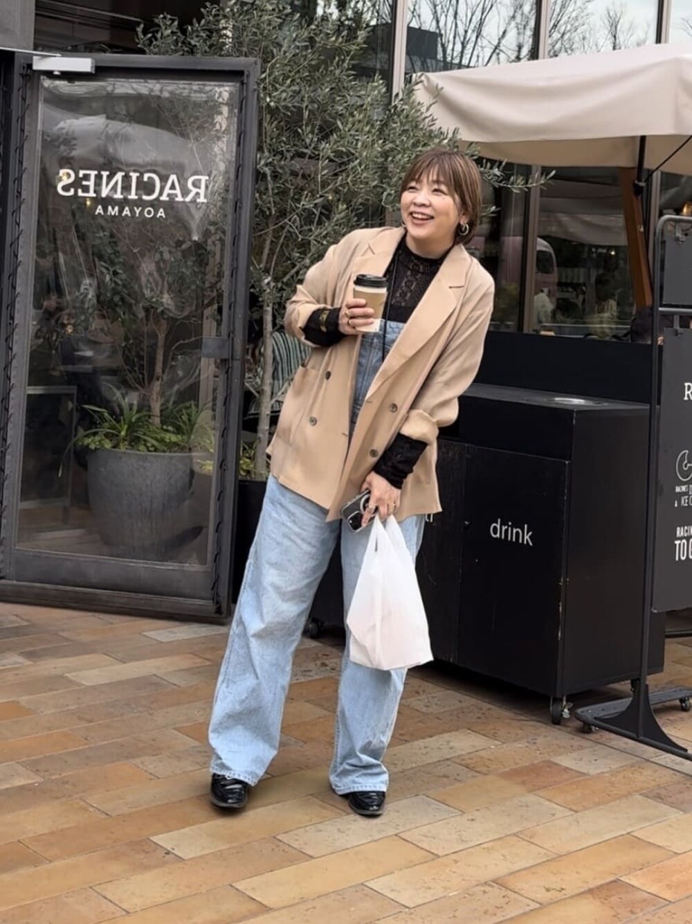 165cm 骨格ストレート このコーデ好きやわぁ。 オーバーオールって、この年齢には敬遠されがちやけど、軽くジャケット羽織るだけで シュっとするー!笑