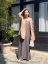 160cm 骨格ナチュラル ●ジャケット シアー素材のジャケット。オーバーシルエットでリラクシーな着心地。 ●ワンピ ほんのりストライプ柄のリネンワンピ。広がりすぎない大人なシルエット。 ◎ベージュ×ブラウンの大好きカラーコーデ。春夏の旅行やお出かけにもおすすめ。