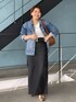 161cm 骨格ウェーブ ブラックデニムスカートに定番のデニムジャケットを合わせたデニムオンデニムコーデ! バックルが華やかなベルトをアクセサリー代わりに久しぶりのインスタイルで合わせました! 私の体型でもインできる余裕があるデニムスカートにです!
