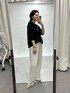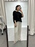 165cm 骨格ウェーブ ブラウスは新色のブラックを着用しています。 サラリと柔らかな素材のブラウス。 リラックスボトム合わせでデイリーにも、きれいめボトムやジャケット合わせでお仕事コーデにもおすすめ! リブ付きなので、袖を伸ばすと七分袖くらい。キュッと捲ると五分袖くらいになります。 ゆるっとパンツ合わせで、大人のお出かけコーデに◎