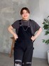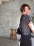 161cm 骨格ウェーブ 締まりカラーのチャコールグレートップスにブラックのオーバーオールで大人のカジュアルコーデ! オーバーオールはブラックにすることで、ほっこりしがちなアイテムもオシャレに取り入れられます!