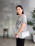160cm 骨格ナチュラル ●トップス 大人カジュアルなロゴトップス。女性らしい素材やシルエットのボトムと合わせるのがおすすめです。 ●ワンピ フリーサイズ着用。カットソー素材のリブワンピ。すっきり見えするシルエットです。 ◎ワンピとレイヤードしたロゴTコーデ。モノトーンで統一して大人ムードに。