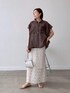 ●ブラウス 光沢感のある上品見えなブラウス。ゆるっとしたシルエットで、裾を絞ってアレンジもOK ●スカート 38サイズ着用。コットンレースのタイトスカート。膝下の透け感がステキです。 ◎品よく着れるきれいめコーデ。ビターなブラウンにレース合わせで軽さを出しました。
