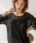 ●ニット 人気のシアーニットにブラック登場! ドライタッチな肌触りで夏も快適です。 ●デニム 36サイズ着用。フレアシルエットで女性らしく履けます。淡めカラーも夏っぽくておすすめ。 ◎大人カジュアルなデニムコーデ。シンプルなので、ベルトやアクセの重ね付けでポイントに。