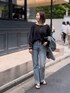 ●ニット 人気のシアーニットにブラック登場! ドライタッチな肌触りで夏も快適です。 ●デニム 36サイズ着用。フレアシルエットで女性らしく履けます。淡めカラーも夏っぽくておすすめ。 ◎大人カジュアルなデニムコーデ。シンプルなので、ベルトやアクセの重ね付けでポイントに。