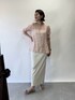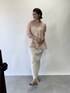 柔らかなピンクのラミーブラウスは、麻のゴワツキがなく着心地抜群です! 爽やかにエクリュのスカート合わせで、トーンアップしたスタイリングに♪