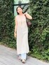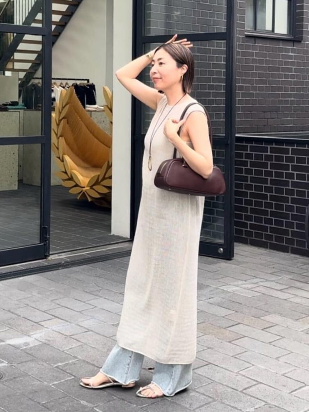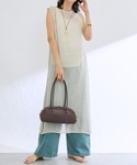 ●ワンピ レイヤードを楽しめるノースリワンピ。ドライタッチな素材で涼しげな印象に。 ●デニム 36サイズ着用。夏らしい淡色カラーが素敵です。 ◎大人のレイヤードコーデ。夏っぽい柔らかトーンに、新作バッグをポイントにしました。