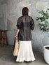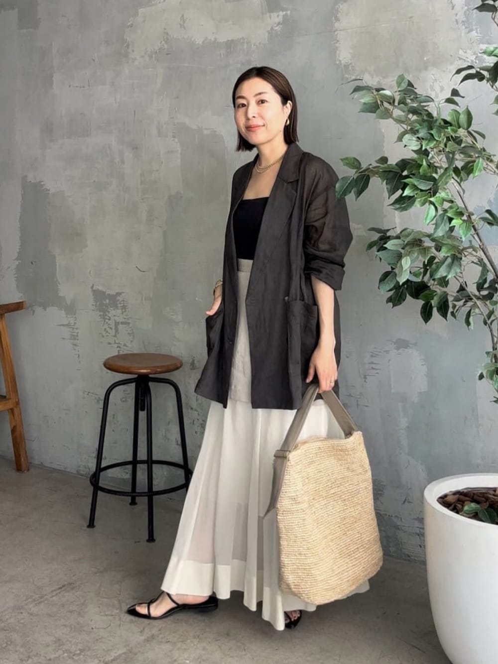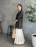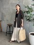 ●ジャケット トープ着用。抜け感のあるラミー素材。羽織るだけでお洒落見えします。 ●スカート 38サイズ着用。裾の動きが素敵なロングスカート。きれいめからカジュアルまで幅広く使えます。 ◎デザインスカートをジャケットできれいめコーデにしました。インナーはブラックでメリハリのあるカラー合わせに。