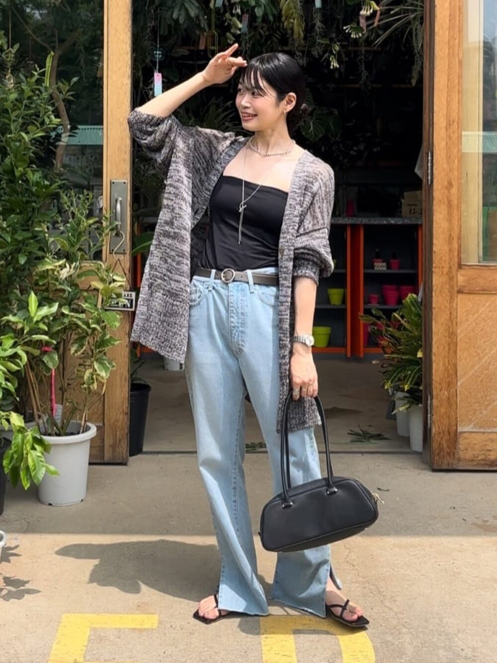 人気のカーディガンをサッと羽織った楽ちんコーデ デニムは38サイズ着用。やや大きいのでベルトはしっかり締めてます。 マイサイズは36を腰履きです。