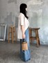 ルーズなアイテム同士のバランスコーデ デニムは38サイズ着用。ウエストが大きいためベルトループにボタンを通して締めています。