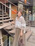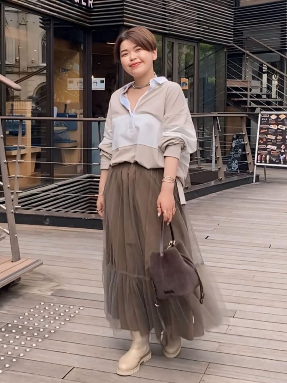 カジュアルなラガーシャツを綺麗めアイテムでまとめた大人カジュアルコーデ! 出来るだけニュアンスカラーでまとめるとより女性らしさがUP!