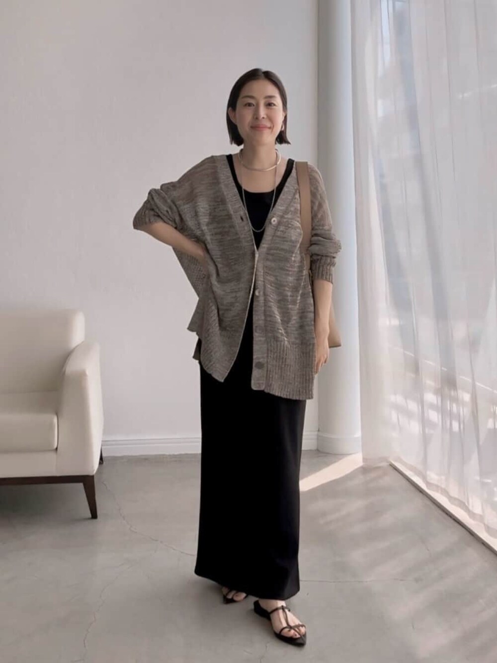 ●カーデ 夏も大活躍なスリットカーデ。透け感のある素材感とカバー力のあるシルエットがポイントです。 ●ワンピ Fサイズ着用。さらっと素材で楽ちんな着心地です。一枚でも羽織ってアレンジしてもOK ◎大人のインしない夏コーデ。カーデを羽織るだけで決まります。アクセの重ね付けもおすすめ。