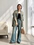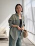 ●シャツ 新色スカイブルー着用。ゆったりフォルムが素敵なデニムシャツ。こなれ感のあるカラーが魅力です。 ●パンツ 38サイズ着用。大きめサイズなのでベルトをしています。36サイズが良さそうです。ベージュがかった色味がお洒落見えします。 ◎デニムオンデニムで合わせました。ファーバッグで秋の装いに。