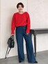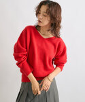 リアルバイの脚長デニムパンツにぴったりの赤ニット! 鮮やかな赤がシンプルなデニムをおしゃれに引き立ててくれます! 一枚はもちろん、コートインナーにも◎