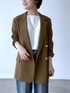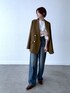 ・ジャケット シワが気になりにくいポリエステルツイルを使用したON・OFF兼用で着用できるライトジャケットです。カーディガンやシャツのように軽く羽織っていただけるところがポイント。 前を開けてカジュアルに着こなして頂くのがおすすめです。 ベーシックなデザインのため流行に左右されにくく、長くご愛用いただけます。 ・ブラウス 昨年も好評だった綺麗めブラウスです。 袖口を折り返したようなターンバックのデザインがシンプルなのにこなれ感溢れるデザイン。 ゆったりとした安心感のあるシルエットとドルマンスリーブで、上半身の華奢見えを叶えます。素材はサラッとした肌触りで、ロングシーズン着られる便利なアイテムです。 ・デニム 36サイズ着用。 太ももから裾にかけて適度にゆとりを持たせたセミワイドシルエットのデニムです。 前身と後身のセンターラインに色抜きの加工を施し、同じ個所にセンタープレスもかけております。プレスが入ることですっきりとした印象で履いていただけるのがポイント。 フルレングスの着丈で裾巾もゆとりがあるデザインなので、スニーカー、ローファー、ショートブーツ等、どんな靴ともスタイリングしやすいです。