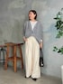 ●ニット ラメがキラキラとした華やかカーディガン。伸縮性があり、ゆったりシルエットでリラクシーな着心地です。 ●インナー ニットに重ねやすいジョーゼット素材。Tシャツよりもさらっとしてシワにならないです。ちくちく防止にも◎ ●パンツ 38サイズ着用。起毛感が心地いいワイドパンツ。冬に映えるアイボリーはきれいめコーデにも使いやすいです。 ◎シルバーカーデを主役にした淡色コーデ。きれいめカジュアルな着こなしにしました。