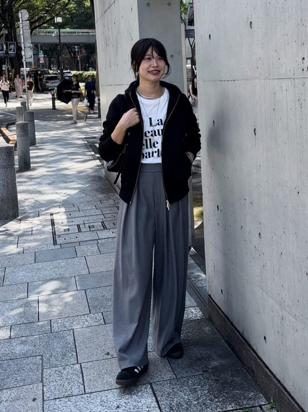 パーカーを使った大人カジュアルコーデ パーカーはブラック着用。程よくコンパクトですっきり見えします。 ボトムは38サイズ着用。 やや大きいので細身の方は36サイズがおすすめです