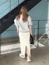 トップス ほどよいサイズ感で少しゆとりのあるスウェットトップス。少し袖をまくるとバランス良く着れます。 スカート 36サイズ着用 152cmで丈感ぴったり。ストレッチがあり楽ちんでストレスフリー。裾のスリットが抜け感を演出。