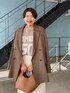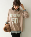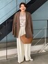ロゴニットを綺麗目に着るコーディネート! ジャケット×スラックス、カラーを柔らかなカラーにするとより女性らしく着れます!