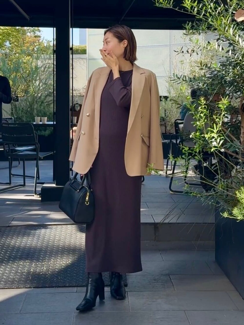 ●ジャケット キャメル着用。ベーシックなカラーはきちんとコーデからカジュアルまで着回しOK。軽くて着心地抜群です。 ●パーカー ホワイト着用。アウターとのレイヤードにも万能なコンパクトシルエット。秋〜春まで長いシーズン活躍します。 ●ワンピ Fサイズブラウン着用。名品リブワンピの長袖バージョン。着痩せ見えする嬉しいIラインシルエットです。 ◎シーズンレスに使える人気アイテム同士を合わせました。きれいめカジュアルな秋のお出かけにぴったりです。