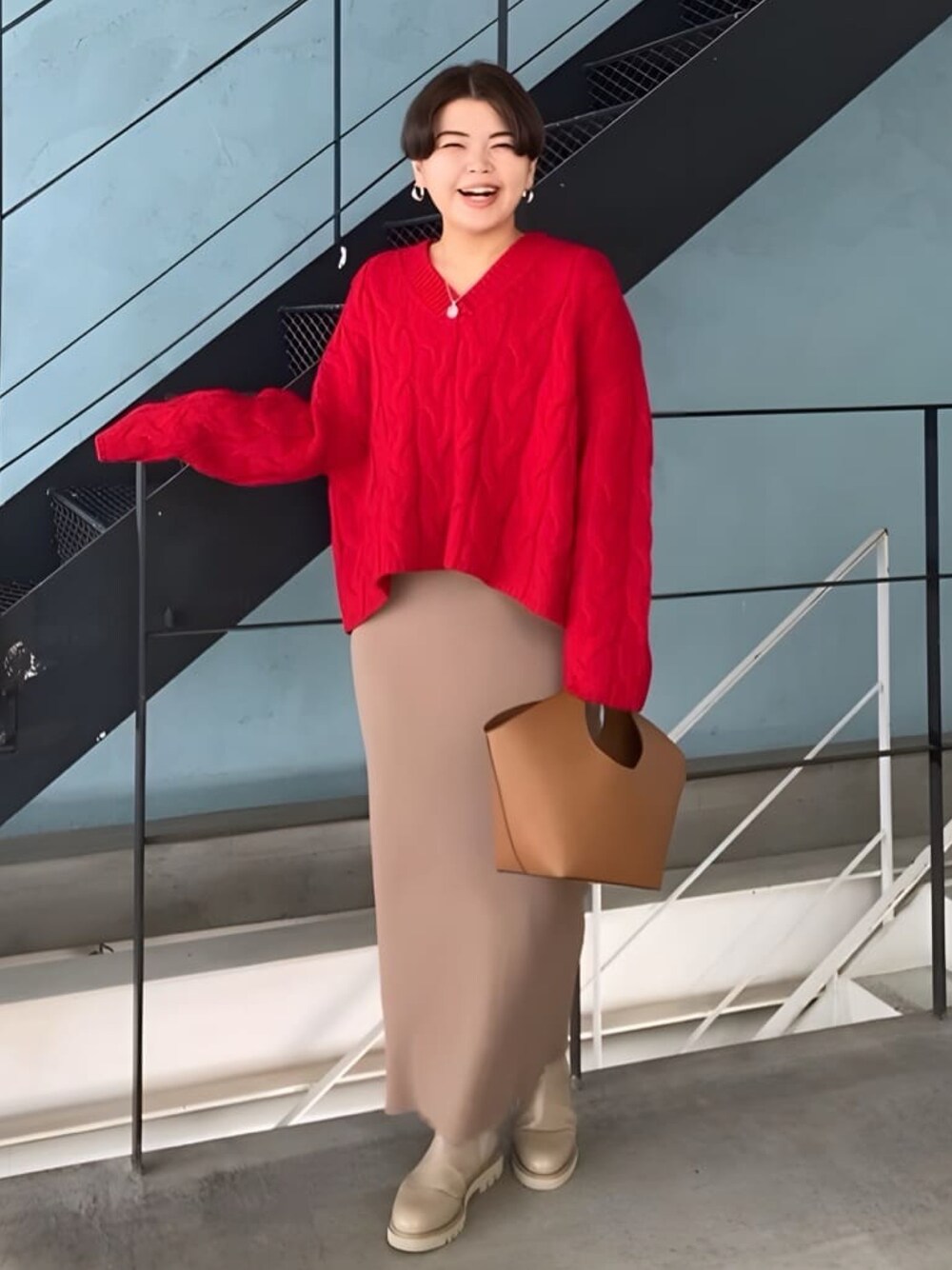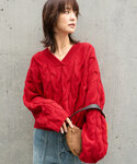 ケーブルがコーデのアクセントになる!綺麗めカジュアルコーデ! インせずにスッキリ着れる丈感で冬のコーデのアクセントにバッチリ!