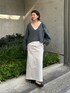 グレーのワントーンコーデ♪ スカートは38サイズを着用しています。 カジュアルボトムに女性らしい抜け感のあるニット合わせに。 ラフなお出かけコーデにおすすめです♪