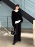 ケーブルニットのブラックコーデ ニットはゆったりとしたサイズ感だけど、Vネックや長過ぎない着丈でバランス良く着れます。 パンツは36サイズ着用。フラットシューズでもギリギリ擦りません