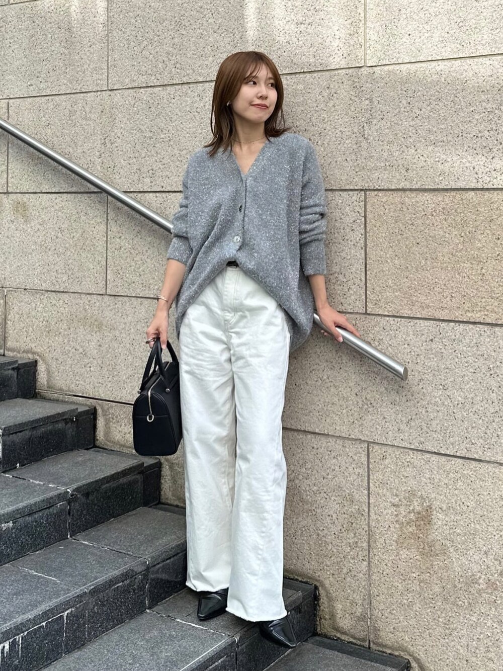 ラメカーデが主役のホワイトデニムコーデ。 デニムサイズ︰38
