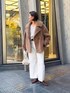 ボアコートはカジュアルコーデに合わせたり、きちんとしたシーンにも◎ 羽織ると重量感もそこまで感じず、暖かく羽織れました◎ ベージュのワントーンにキャメルの、女性らしい色合わせに。