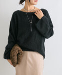 ふわふわ可愛い へアリーヤーンボートネックニット♪ お袖のゆるっと感も女性らしく素敵です♪ 着用サイズ パンツ 38