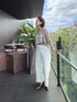 ベージュ×ホワイトボトムの大人なワントーンコーデ♪ ロゴニットは薄手で柔らかく、ゆるっとしたシルエットなのでカジュアルすぎず着られます◎ デニムはSHIHOコラボカラーのホワイトデニムです!サイズは38サイズを着用しています。 冬のふわふわニットに合わせたり、ウールコートに合わせたり、こっくりとした濃いめカラーのトップスを合わせたり…スタイリングを柔らかくしたりメリハリをつけたり、たくさん着回していただけるはず…! 白なのに透けにくくて気楽に穿けるのもおすすめポイントです♪