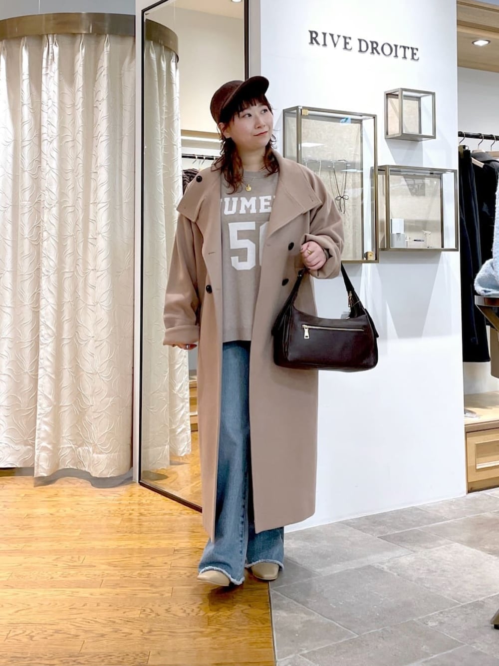 \ 冬の大人カジュアルコーデ / #158㌢ #骨格ストレート 【コート】Fサイズ / キャメル スタンドネックがクラシカルな印象のウールコート! ボタンを開けて着用する際は ネック部分を折り返して着ていただいても華やかな印象に◎ 着丈は長めで、冬も暖かく 羽織るだけでトレンドライクに決まります! サイズ感はゆったりとしているため 中に厚手のニットなども着用しやすい一着です◎ 【ニット】Fサイズ / ベージュ インせずに決まる! ロゴデザインが素敵な痩せ見えニット!! ちくちく感がなく、厚手すぎないニットなのでロングシーズン楽しめます◎ 【デニム】40サイズ / ブルー 美脚見え間違いなし!フレアシルエットのスッキリデニム! こだわりの加工感、シルエットで-3キロ見えします◎ ※slit DENIMよりもコンパクトなサイズ感です 【ブーツ】Lサイズ / ベージュ コーデを素敵に仕上げてくれるヒールショートブーツ! 足に馴染みがよく、歩きやすさも◎ 靴裏はフラットなので、冬に履く場合は裏張りするのがおすすめです! ※Lサイズで厚手の靴下で丁度良いサイズです ※普段は23.5〜24.0cmで靴を選んでいます