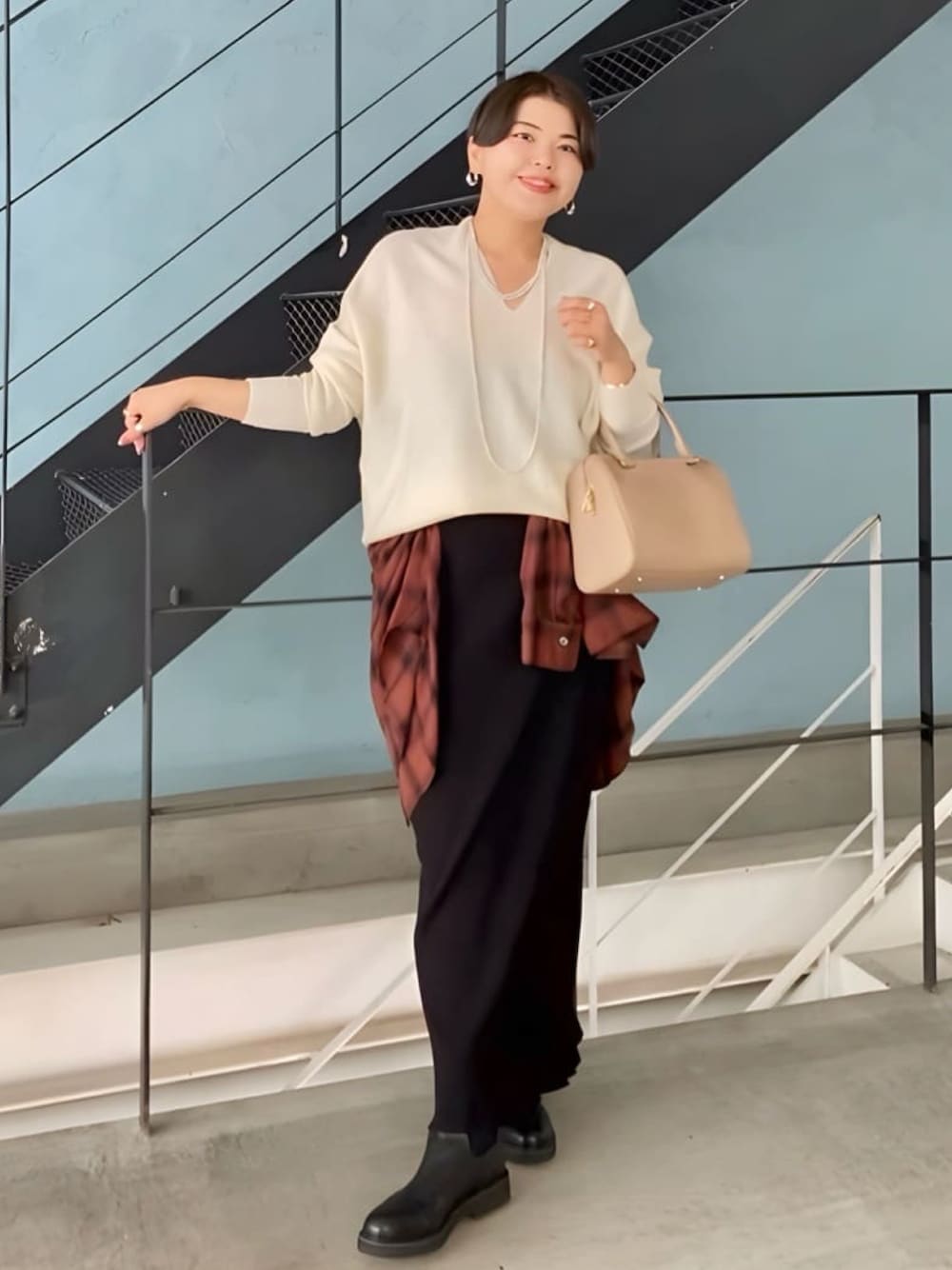 パルクロでも店舗でも人のバックボリュームニット! 顔まわりがスッキリ見えるVネックと程よくボリュームのあるウエストやヒップ周りでチ体型カバーしつつ、綺麗めにもカジュアルにも使える優秀アイテムです!