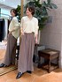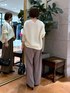・ニット 定番のウール100バックボリュームニットです。ゆったりしたサイズでヌケ感のあるオンナっぽニットになっております。ゆったりとゆとりのある着丈、身幅で着やすく、開きすぎないけれどすっきりと見える衿の開きが特徴的なニットです。 ・パンツ 36サイズ着用。 後ろゴム仕様、ゆったりとしたシルエットで、イージーな履き心地ながら綺麗見えが叶う優秀なスラックスです。ファスナーがなく脱ぎ着もラクチン。タック入りで気になる腿周りをカバーする嬉しい効果もあります。お仕事にはもちろん、お休みの日のカジュアルコーデや、学校行事などにもオススメのアイテムです。