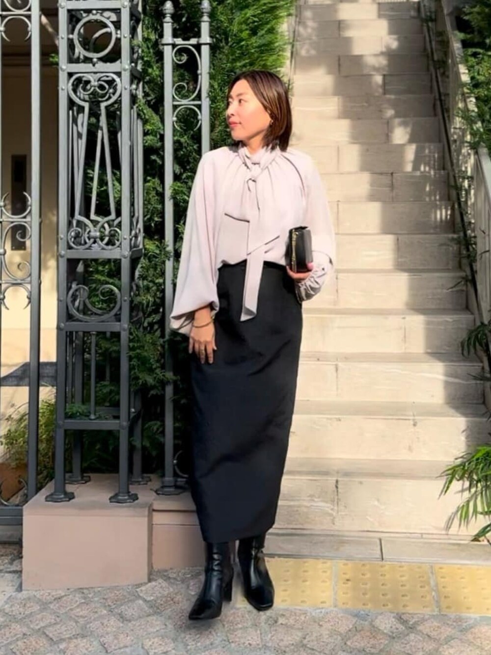 RIVE DROITE official(RIVE DROITE本部)のシャツ/ブラウス「【上品見えする◎】ジョーゼットボウタイブラウス」を使ったコーディネート