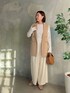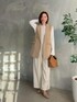 ●ジレ コーデのポイントになるジレ。長めな着丈で体型カバーにも◎ ●トップス ポコポコした凹凸感のあるカットソー。女性らしいデザインがすてきです。伸縮性もあり、程よい透け感で一枚でも着やすいです。 ●パンツ 38サイズ着用。定番パンツのアイボリー。冬はもちろん、春も着回ししたい上品カラーです。 ◎淡色合わせのジレコーデ。落ち間のあるワイドパンツでバランスUPします。