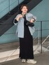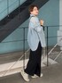 ニットワンピースの春コーデ! デニムシャツだけで、一気に春のムードに! 小物をブラックで揃えると締まってみてえ◎