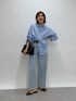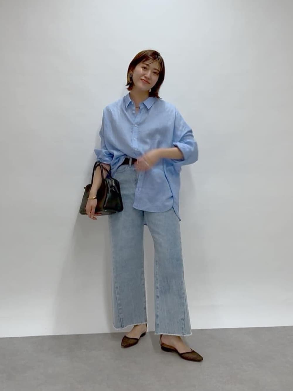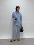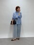 サックスカラーの爽やかなワンカラーコーデ。 小物をブラックで引き締めて、きちんと感をプラス◎ デニムは38サイズを着用しています。