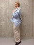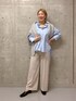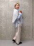 サックスのベーシックなオーバーシャツは オールシーズン使える万能アイテム カフスが長いバランスと刺繍が ポイントになってシンプルですが可愛いです。 パンツはツルッとした薄手のワイドパンツ そこまで幅広いではないので セミワイドくらいの幅に感じます。 裏地付きで収まりの良いシルエットなのが デイリーに使いやすくシーズンレスの 楽ちん美パンツを更新するのにおすすめ!
