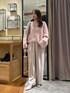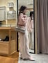 深めのVネックがポイントのゆるっとニットです。 インナーを変えるだけで、ガラッと雰囲気が変わるのでタンクやキャミソールだけでなく、シャツやカットソー合わせもおすすめです◎ ベージュのパンツを合わせて、柔らかい色合わせにしてみました。 甘すぎずに着れる大人のピンクニットです。