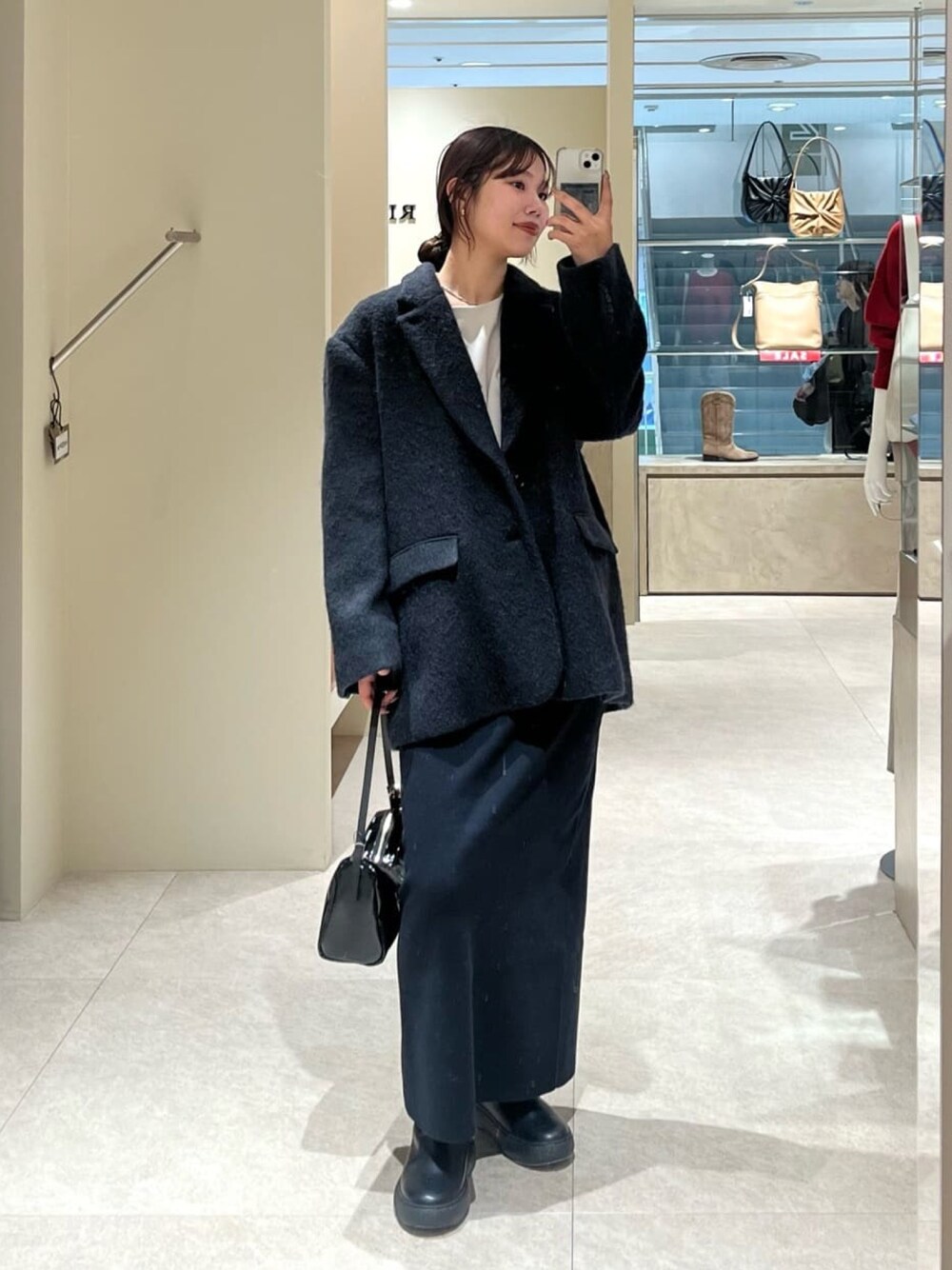 165cm 骨格ナチュラル スカート38サイズ着用 シャギージャコットで綺麗めコーデに◎ とっても軽く普段からオケージョンシーンまでお使いいただけます。 セットアップのスカートを着用して綺麗めスタイルに。