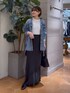 ・シャツ オーバーサイズのデニムシャツです。リラックス感ある着心地です。柔らかめの素材を使用しているので、シルエットもすっきりと着やすい仕様になっております。 1枚で着ていただくのはもちろん、ロンTなどの上から羽織としても着れて、アレンジがしやすい一枚です。 ・スカート 36サイズ着用。 体に馴染んで落ちるマーメイドシルエットが綺麗なスカートです。シルクのような軋み感のある肌触りが気持ちいい、ウォッシャブルのフィブリルキュプラを使用しています。 ウエストは総ゴムでリラックスした履き心地ですが、ウエスト部分もたつきなくすっきり履いていただけます。着丈は長めなシルエットで踵くらいです。ヒールのあるシューズだと安心です。