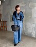MONNのデニムセットアップコーデ トップスは胸元の抜け感がポイントのデニムシャツ。 インナーで遊べそうなデザインです。 同素材のパンツはシルエットがとにかくキレイ! 履くだけでスタイルアップして見えるのが嬉しいデザインです。 キレイめカジュアルで使うなら、ぜひセットアップで着るのがオススメです。 ブラックのカーディガンを羽織りにして、肌寒い日も安心してお出かけできるコーデにしました♪