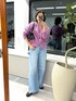 鮮やかなピンクが新鮮♪シンプルなのに華やぐデニムスタイルです◎ 着るだけで気分が上がるカーディガンは、もっちりと柔らかなニット素材でチクチクせずに着られます◎ カーディガンとしても、前を閉めてプルオーバーとしても首元が開きすぎずすっきり見えする良いバランスです♪