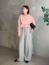●アウター 名品ボアコートは、軽くてゆったりとリラクシーな着心地。暖かくて冬の頼れる一枚です。 ●ニット ゆるさのあるネックがポイントのニット。 ●パンツ 38サイズ着用。裏起毛で暖かいスウェット。カジュアル見えしすぎないシルエットです。 ◎ピンク×グレーの大人カジュアルコーデ。黒小物で締め役にしました。