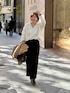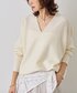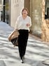 骨格ストレートに似合うニットコーデ ホワイトニットは、Vネックデザインで洗練された印象を演出。 脚長効果のあるストレッチ入りスカートと組み合わせることで、スタイルアップと着痩せを同時に叶えます。 高品質なニット素材は秋の季節感にぴったりで、きれいめカジュアルからオフィススタイルまで幅広く使えます。